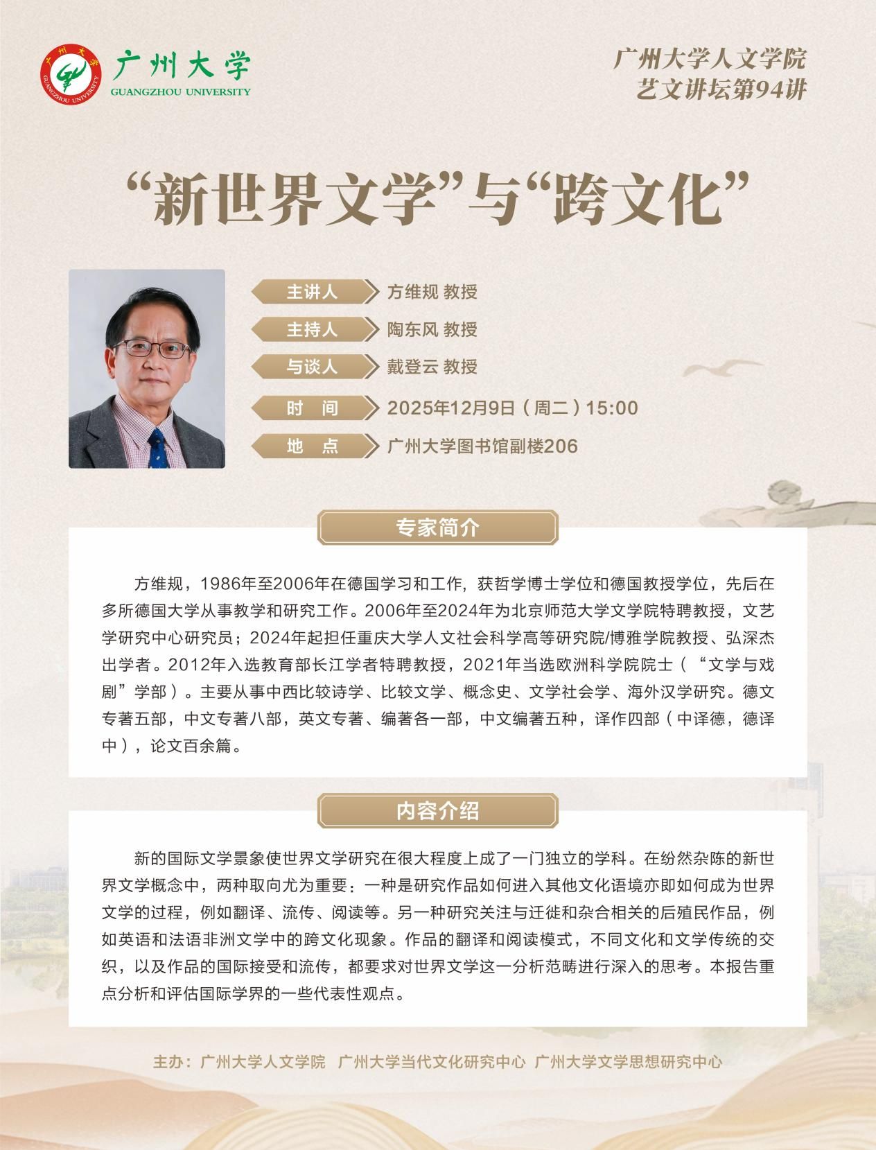 讲座预告丨方维规:“新世界文学”与“跨文化”