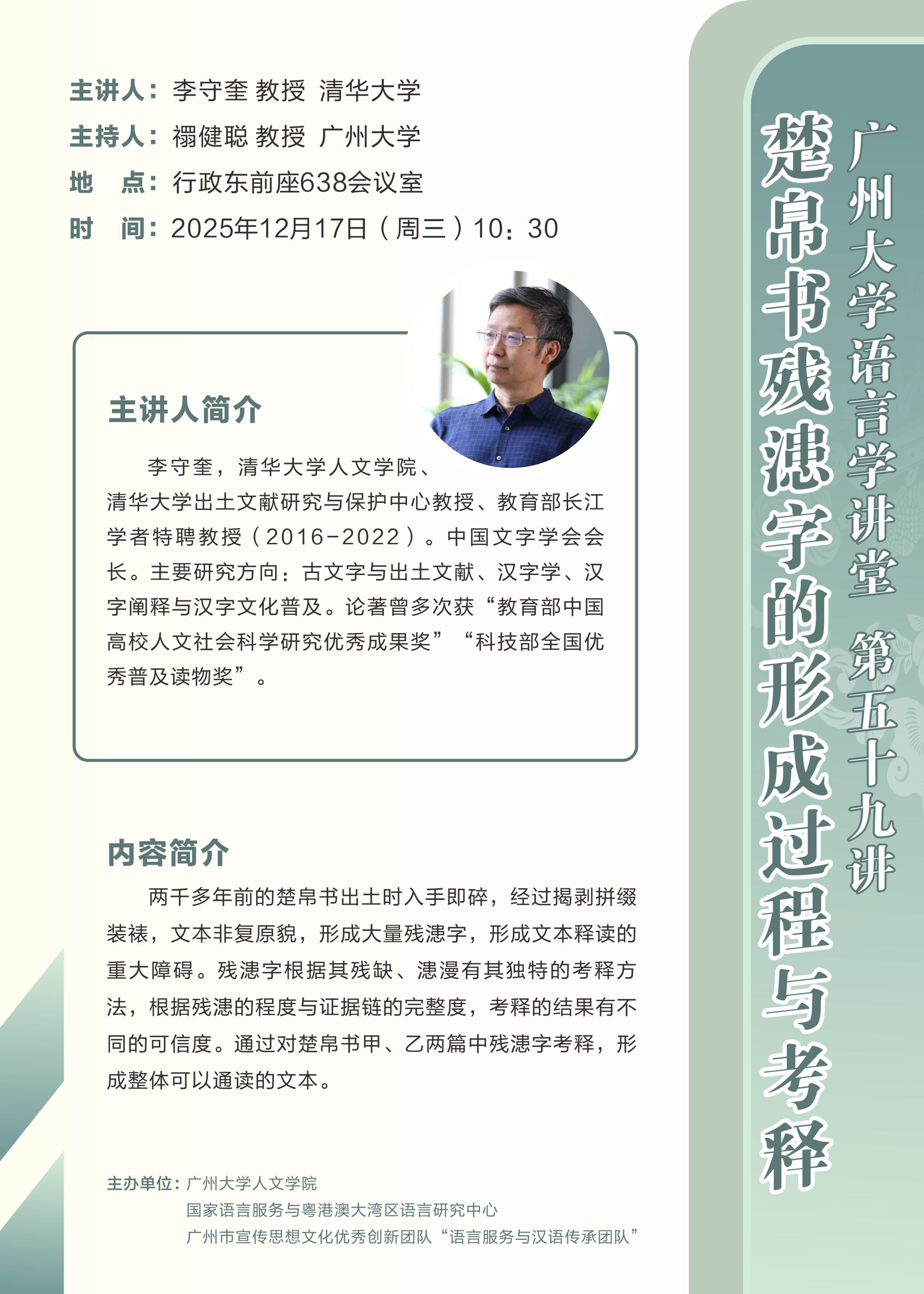 讲座预告丨李守奎:楚帛书残漶字的形成过程与考释